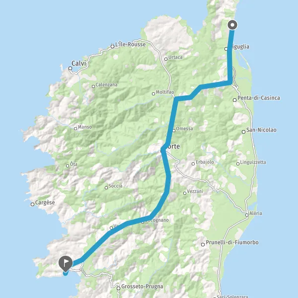 Take a slight right onto T20 (Carrughju Anziana Gendarmeria) and continue for 14 kilometers