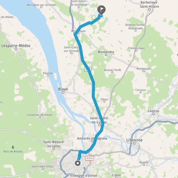 Merge right onto Boulevard de l'Entre-Deux-Mers and continue for 700 meters