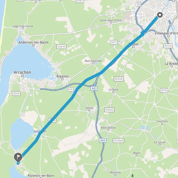 At the roundabout, take the 2nd exit onto D216 (Avenue du Val de l'Eyre) and continue for 14 kilometers