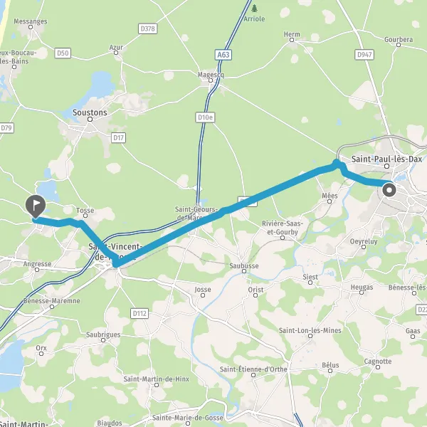 Merge right onto D824e (Route de Dax) and continue for 2.5 kilometers