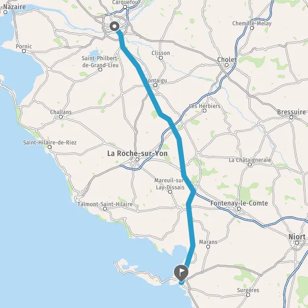 At the roundabout, take the 2nd exit onto Boulevard de Vendée and continue for 82 kilometers