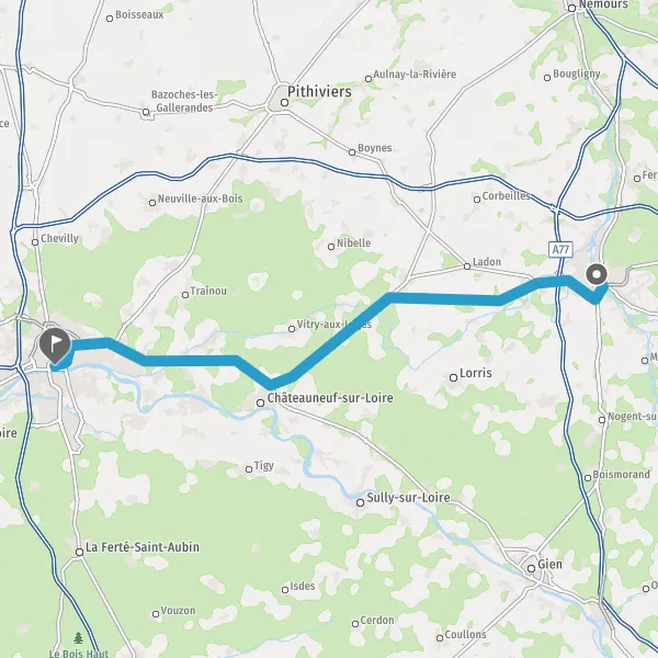 A77A19OrléansVillemandeurChâteauneuf-sur-LoirePithiviers