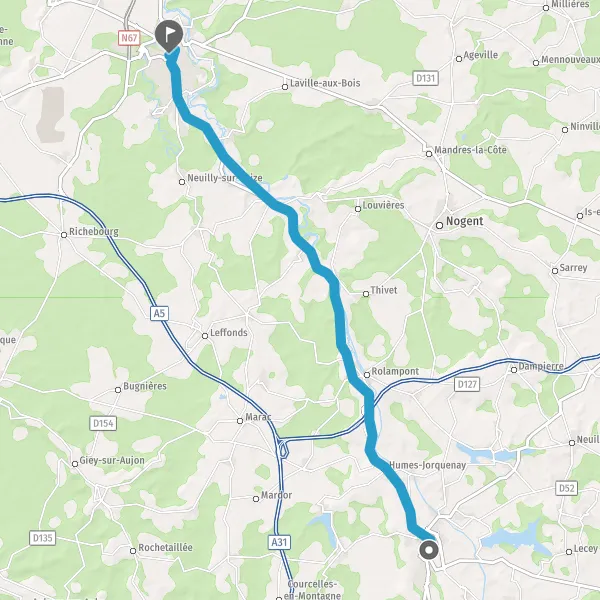 Take a slight right onto N19 E54 (Route de Chaumont) and continue for 8.1 kilometers
