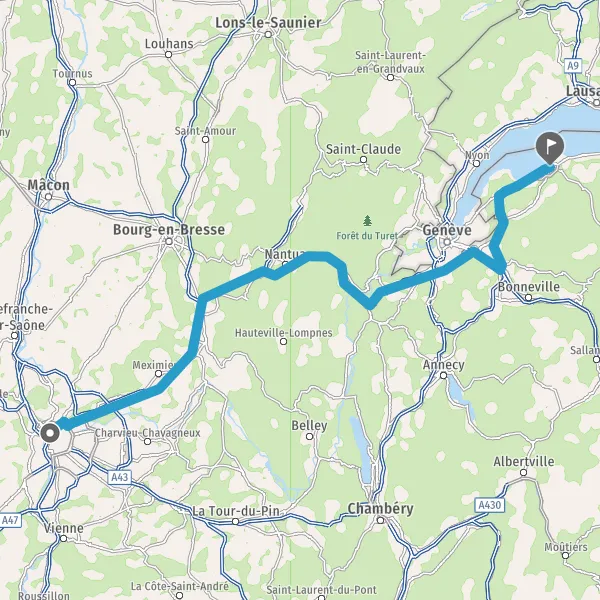 Merge right onto A40 E62 E21 and continue for 89 kilometers