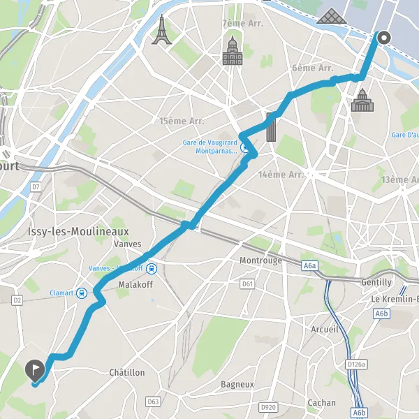 Take a slight right onto Rue Vercingétorix and continue for 300 meters