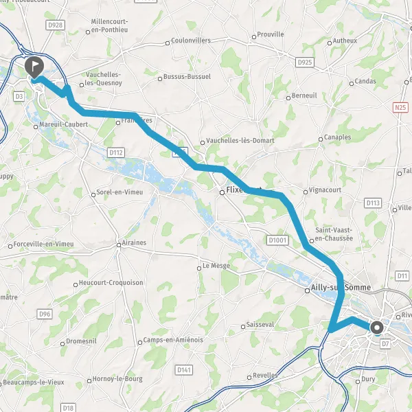 Take a slight right onto D1001 (Route d'Amiens) and continue for 550 meters