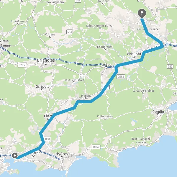 At the roundabout, take the 2nd exit onto N555 D1555 (Ancienne Route de Draguignan) and continue for 1.1 kilometer