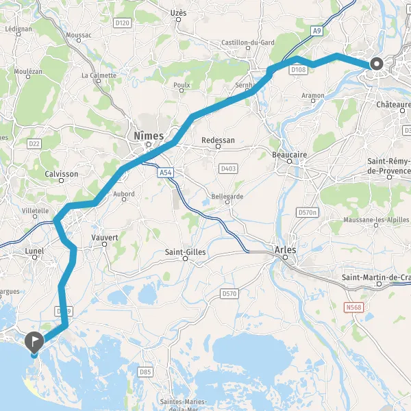 Take a slight right onto N100 (Route Nationale de Montpellier à Avignon) and continue for 2.1 kilometers