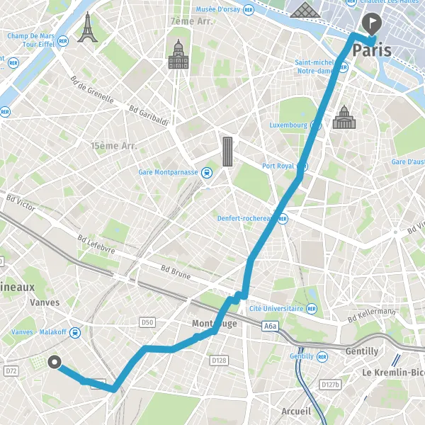 Take a slight left onto Avenue Denfert-Rochereau and continue for 750 meters