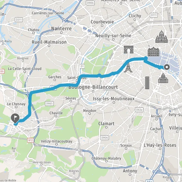 If you need to book a carpooling from Mappy, take a look at the travel information of Paris to Versailles on our network. Compare your journey Paris Versailles by carpooling, between different lines or with other modes of transport, and calculate the saving of time and cost.