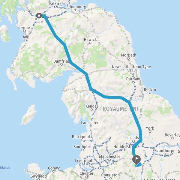 Merge left onto E05 M74 (M74) and continue for 7.9 kilometers