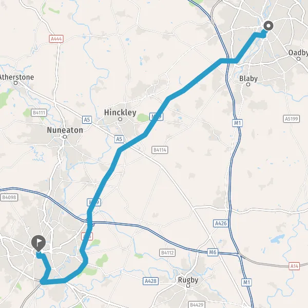 At the roundabout, take the 2nd exit onto M69 and continue for 29 kilometers