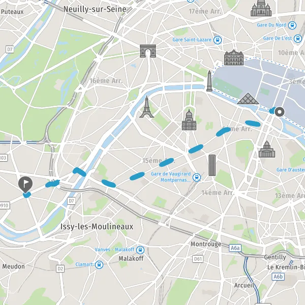 Merge right onto Avenue Édouard Vaillant. Continue for 1 kilometer