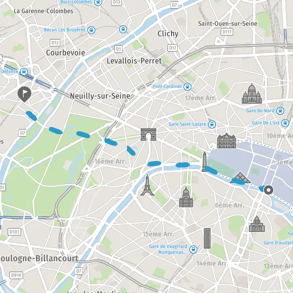Turn left onto Allée de Longchamp and continue for 20 meters