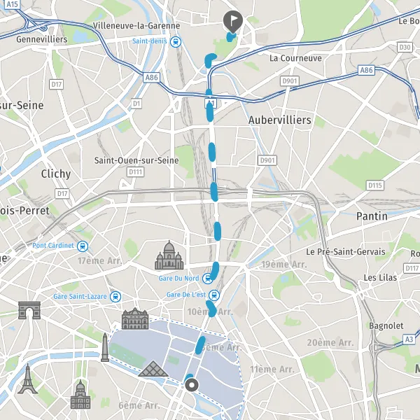 Take a slight right onto D931 (Avenue de la Porte de la Chapelle) and continue for 3.3 kilometers