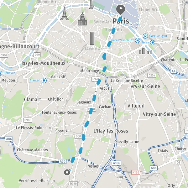 Continue on Rue Saint-Jacques for 1.4 kilometer