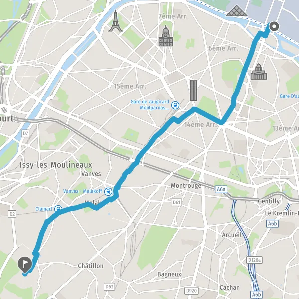 Turn left onto the cycleway Rue Vercingétorix and continue for 500 meters