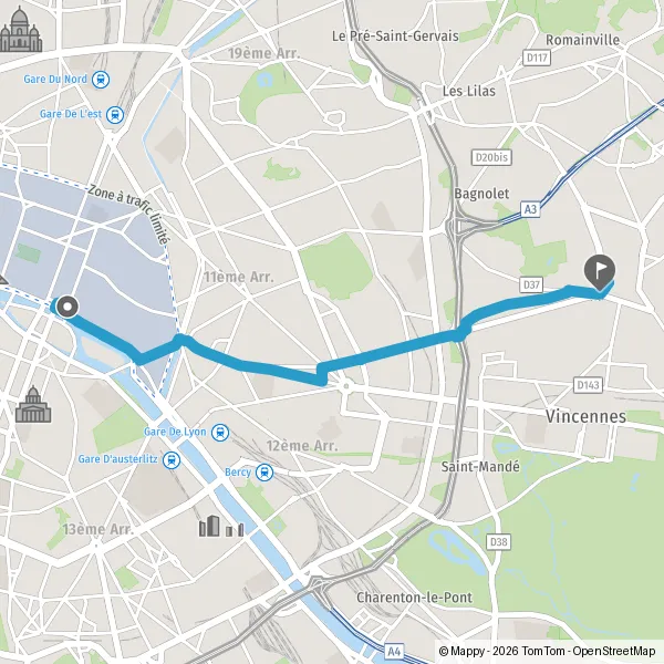 Turn right onto the cycleway Place de la Porte de Montreuil and continue for 170 meters