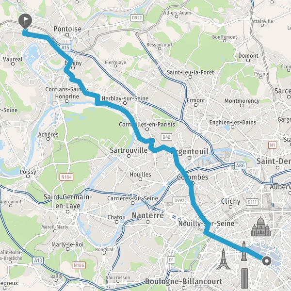 At the roundabout, take the 2nd exit onto the cycleway Boulevard de l'Oise and continue for 1.3 kilometer