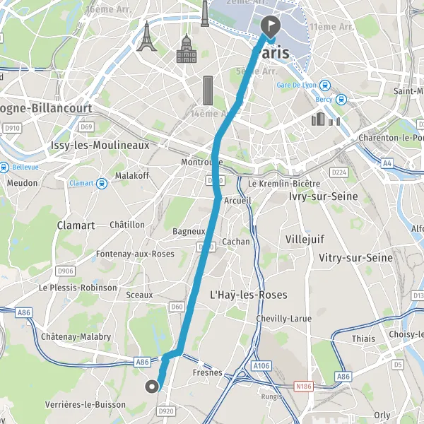 Take a slight right onto Avenue de Sceaux and continue for 100 meters