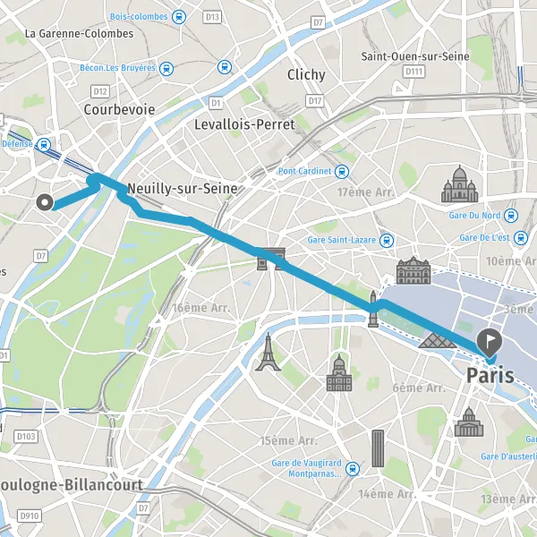Take a slight right onto the cycleway Avenue Charles de Gaulle and continue for 1.4 kilometer