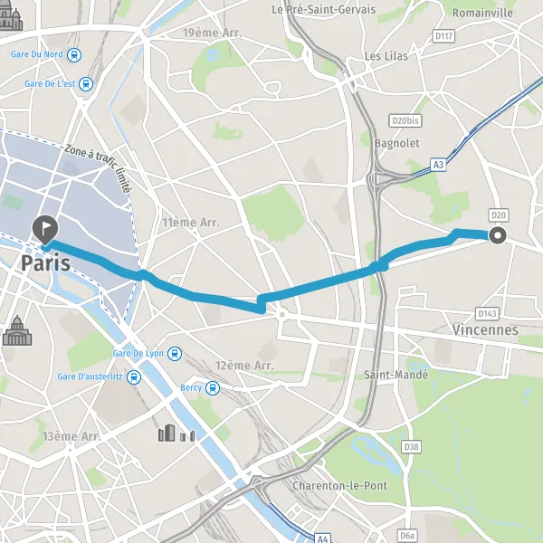 Turn right onto the cycleway Place de la Porte de Montreuil and continue for 140 meters